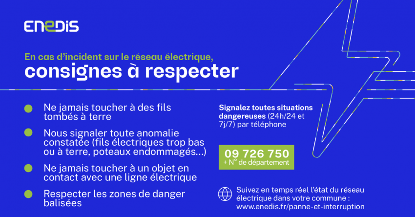 En raison de la tempête Benjamin, Enedis vous demande de respecter les consignes suivantes en cas d'incident sur le réseau électrique :